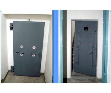 普通钢筋混凝土单扇防护密闭门和密闭门定型最早。其特点是门扇为钢筋混凝土结构,具有固定门槛,密闭措施采用嵌压梯形海棉胶条方式,密闭性能可靠,但质量较重。